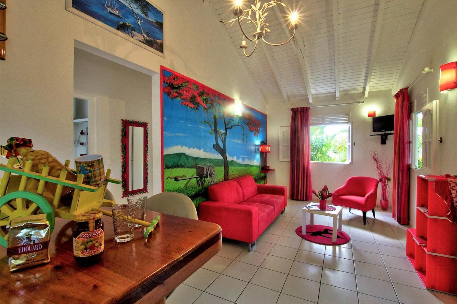 Chaleur, énergie et caractère : Ti Rouj vous enveloppe dans une ambiance créole vibrante. L’espace généreux et la terrasse ombragée promettent des moments conviviaux et inoubliables.
